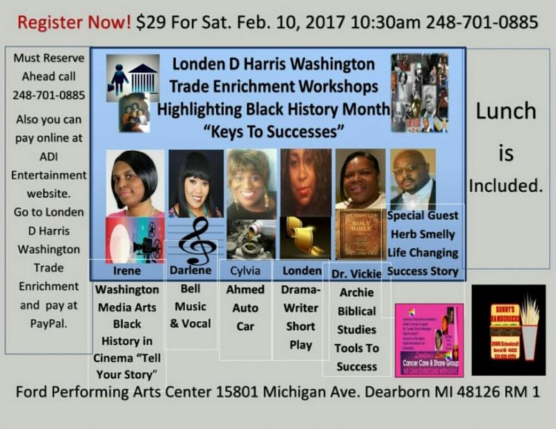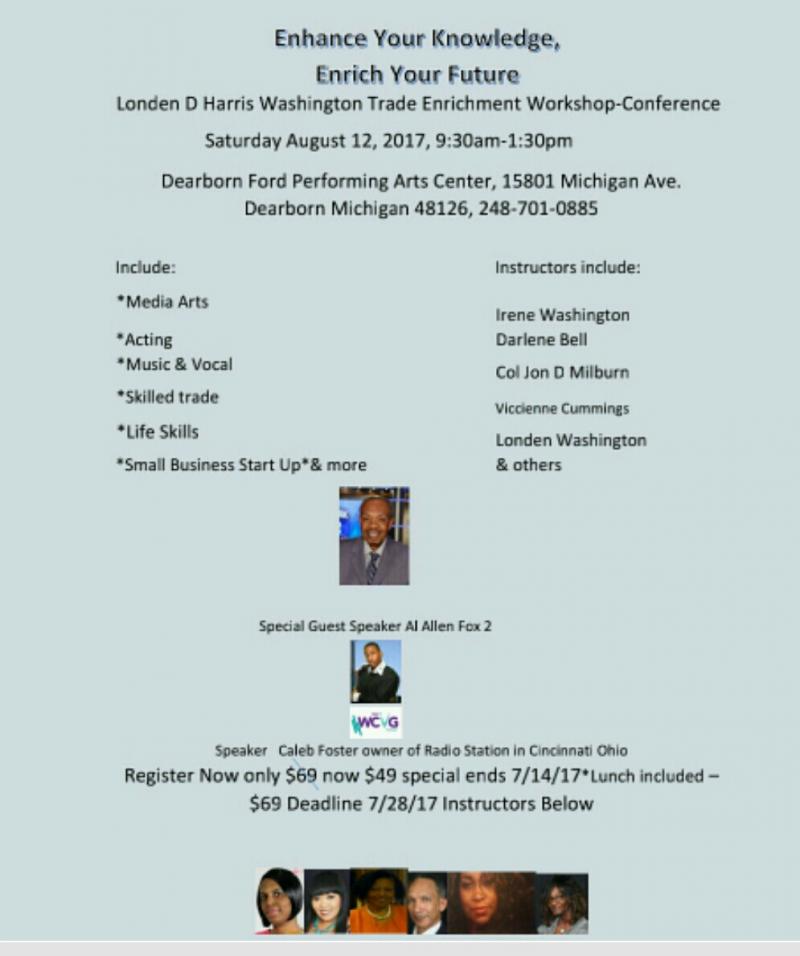 LONDEN D HARRIS WASHINGTON TRADE ENRICHMENT TIME HAS BEEN CHANGED TO 10:30AM TO 1:30PM ON SATURDAY AUGUST 12, 2017 AT FORD PERFORMING ART CENTER, TRADE ENRICHMENT WET ROOM 1.