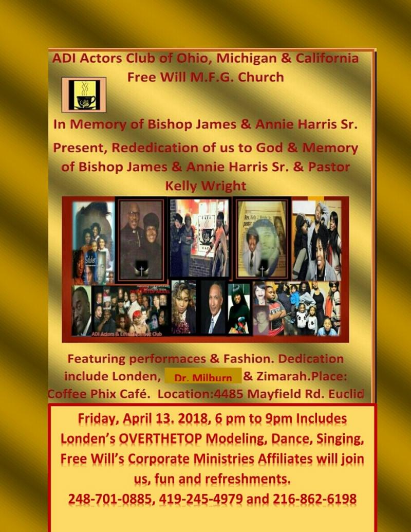 The family tree, is carrying on Bishops church, Pastor Doris his daughter is overseeing Free Will M.F.G. Church Nondenominational. The ministry is broadcasted on Comcast cablevision every Thursday morning from 8am-9am on channel 190. Also there are planned to be scheduled broadcast services collaborating with other ministries at the Ford Community Center in Deaborn Michigan on the 3rd Thrusday of each month starting in July at 6:30pm in room 3. For more information call: 313-243-4674.