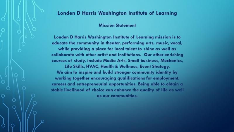 LONDEN D HARRIS WASHINGTON TRADE ENRICHMENT TIME HAS BEEN CHANGED TO 10:30AM TO 1:30PM ON SATURDAY AUGUST 12, 2017 AT FORD PERFORMING ART CENTER, TRADE ENRICHMENT WET ROOM 1.